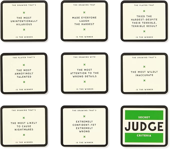 - HOW TO PLAY - Each round is judged on a randomly selected (and secret) criteria. Everything from ‘most accurate’ to ‘unintentionally hilarious.’ It doesn’t matter if you’re a talented artist or not, absolutely no one really knows what an aardvark looks like, so anyone can win.