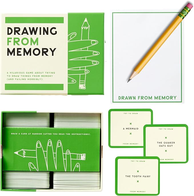 - GIFT IT UP - The Drawing From Memory Social Game by Brass Monkey is going to be the biggest hit at your next party. It's easy to play and perfect for all ages, making it a great gift for anyone. The cards are designed with fun and whimsical prompts that are sure to inspire some unique art, perfect for those who can't draw, love to draw, or love to make fun of drawings.