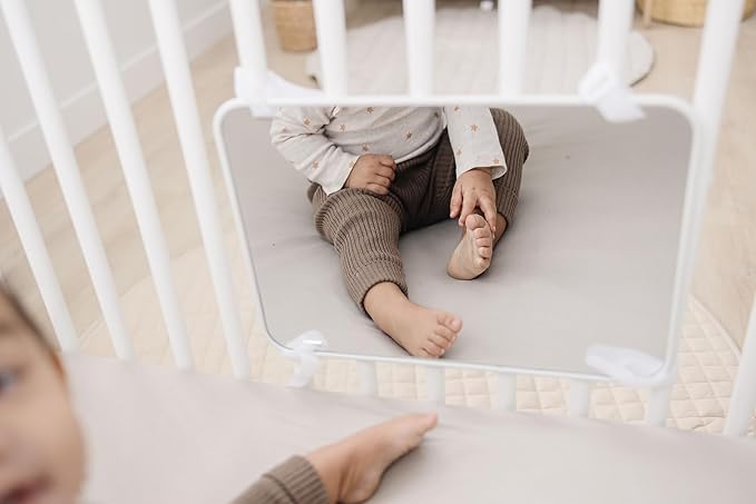- Easy to Attach: This crib mirror for baby is easy to attach to any crib using the included velcro straps. It's the perfect baby mirror for crib or bassinet to keep your baby entertained.