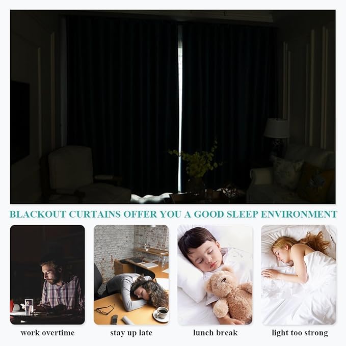 - Amazing Material: Super heavy and soft Blackout Curtain Panels are very upmarket. Besides, 85%-99% light blocking, thermal insulated, soundproof, and energy-efficient. Thread trimmed and wrinkle-free, both sides are the same color.