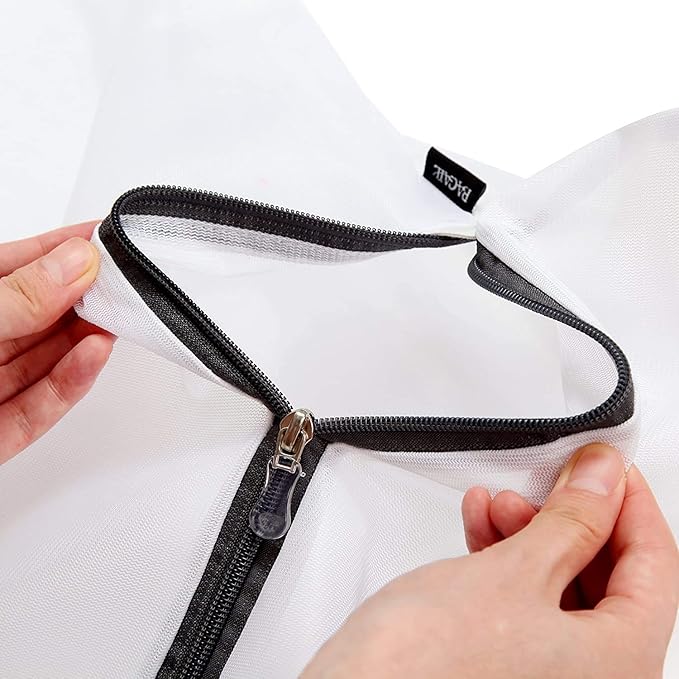 - Auto-locking zipper: The zipper can be locked automatically so that the zipper will not be opened during washing; the zipper cover provides extra protection for the zipper; that would protect the garment throughout the wash