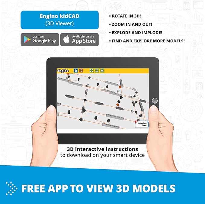 - FOR AGES 9+ - Engino's toy kit is perfect for children who love to build and experiment. The interactive 3D app lets them build in virtual reality, making it an even more exciting and engaging experience.