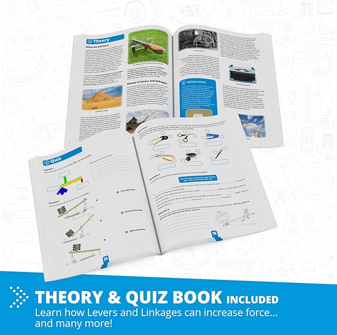 - EASY TO FOLLOW INSTRUCTIONS make it a breeze for your kids to build and learn. The building toy includes 14 pages of theory and fun facts that explain scientific principles, along with exciting experiments to test new knowledge. Plus, there's a 4-page quiz section to keep them engaged!