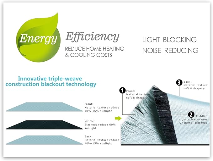 - NEW BLACKOUT TECHNOLOGY - Innovative triple-weave construction helps block up to 90% Sunlight (darker colors have a better effect). Perfect for napping children, day sleepers, shift workers. Also helps reduce noise.