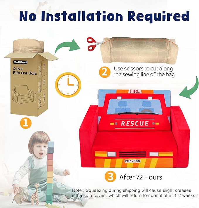 MallBest Kids Sofas Children's Sofa Bed Baby's Upholstered Couch Sleepover Chair Flipout Open Recliner(Red/Fire Truck)