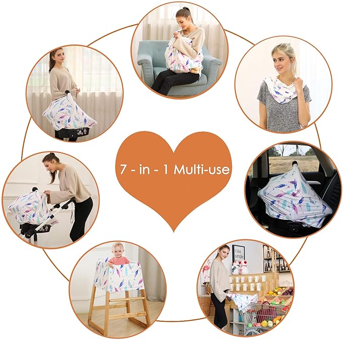 Carseat Canopy Covers for Breastfeeding - Baby Car Seat Covers Breastfeeding Cover Multi Use Boys and Girls Shower Gifts (Feather)