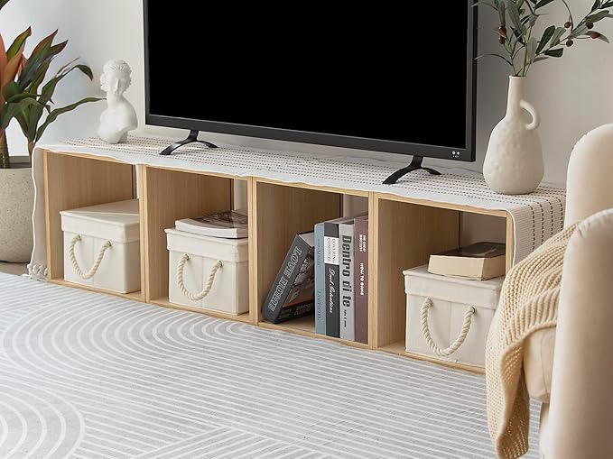 - Thick fabric storage boxes with lids reinforced with heavy-duty boards.