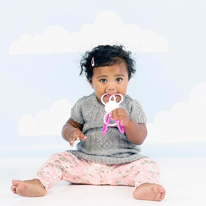 Manhattan Toy Zoo Animal Winkel Bunny Rabbit Multicolor Rattle & Sensory Teether for Baby and Toddler