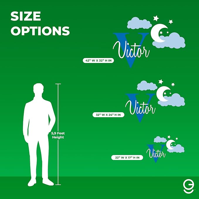 e-Graphic Design Inc Custom Name & Initial Moon Clouds Stars - Baby Boy - Nursery Wall Decal for Baby Room Decorations - Mural Wall Decal for Home Children's Bedroom (MM109) (Wide 42" x 32" Height)