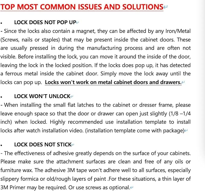 - [ WORKS FOR ALL CABINETS AND DRAWERS ] Extra Stronger vmaisi Locks work on Max 2 inches cabinets door and work on all cabinets and drawers door for Childproof. Use them in the kitchen, bathroom, pantry room, storage area, and bedroom. They"ll even work for a 30 lbs determined dog who gets into the cabinets!