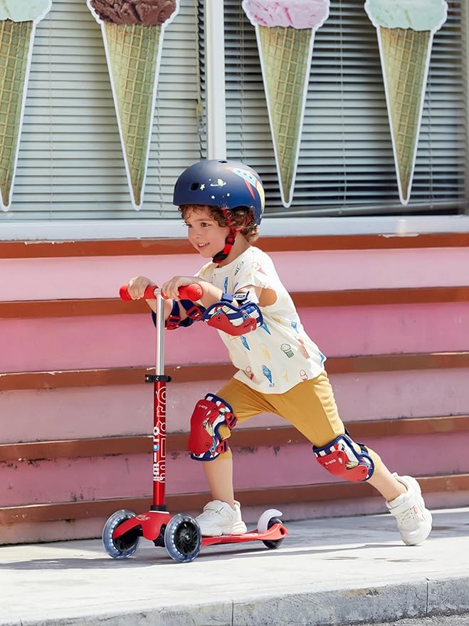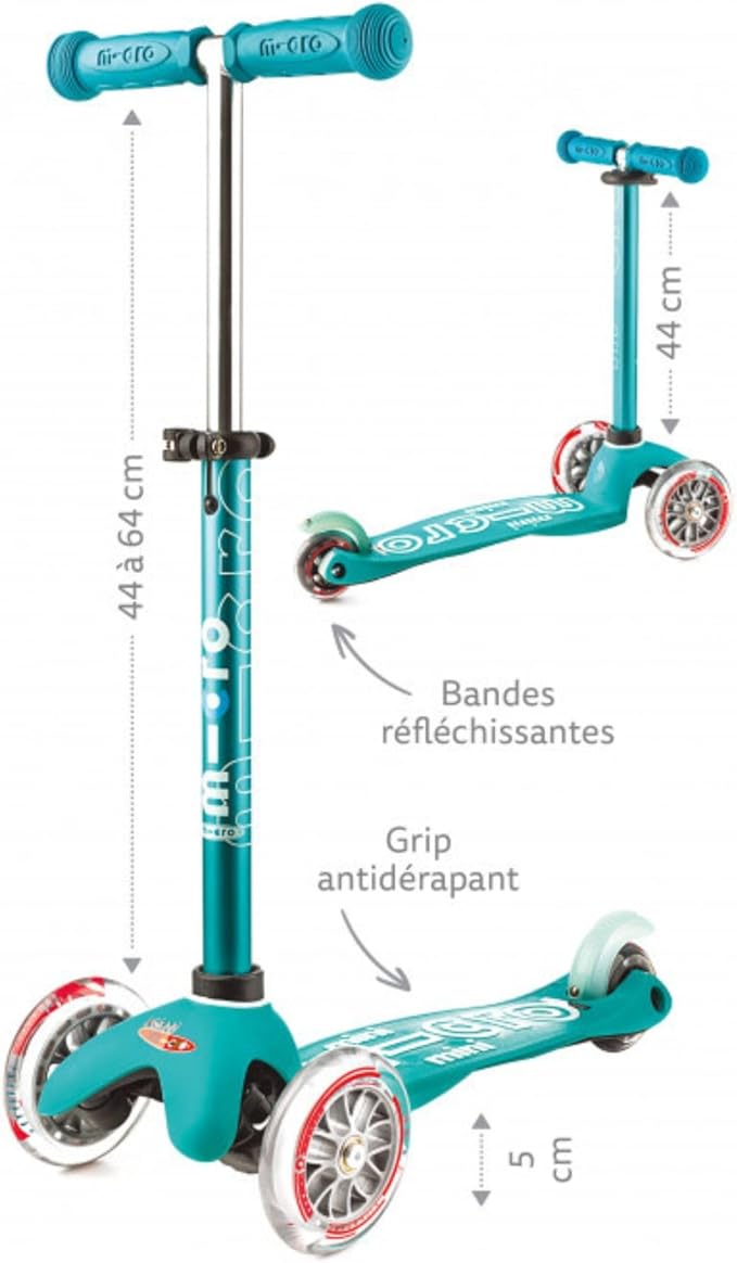 - Micro's 3-wheeled Mini Deluxe LED scooter, with a lean-to-steer design, offers a stable ride that supports toddlers and small children as they master balance and coordination. Features two front LED motion-activated light-up wheels. (No batteries required!)