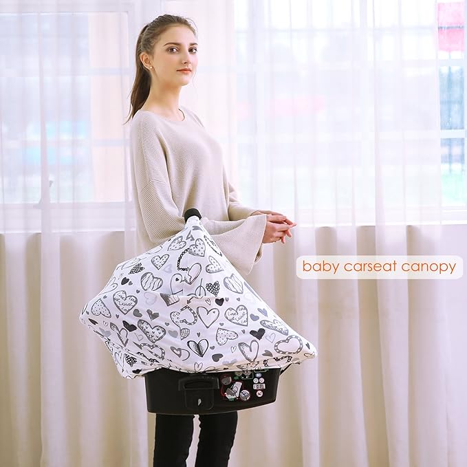 Baby Car Seat Covers, Carseat Canopy, Boys Girls Privacy Breastfeeding Cover (Grey Heart)