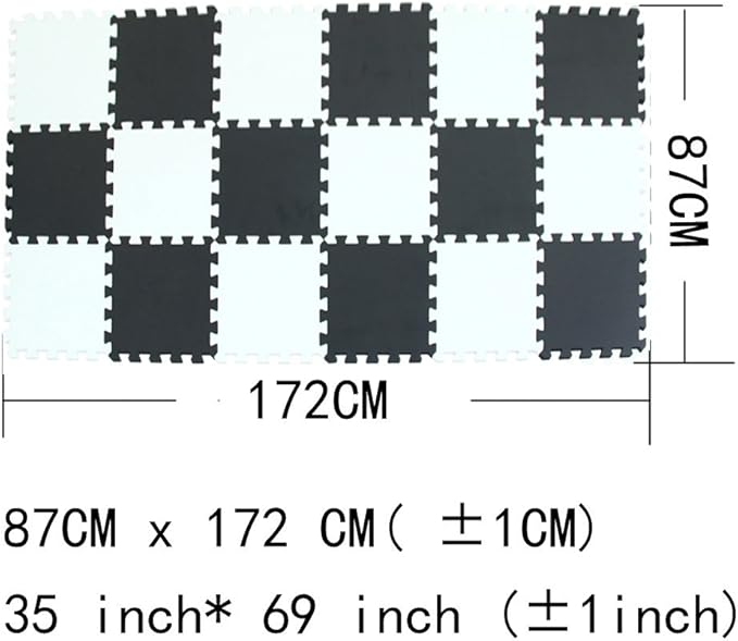 - ☺ Play Mat Size: the size of one piece:30 x 30 x 1CM (11.8 x 11.8 x 0.4 inches); 18 pieces mats cover area: 172cm x 87cm (±1CM) / 69" x 35"(±1inch)