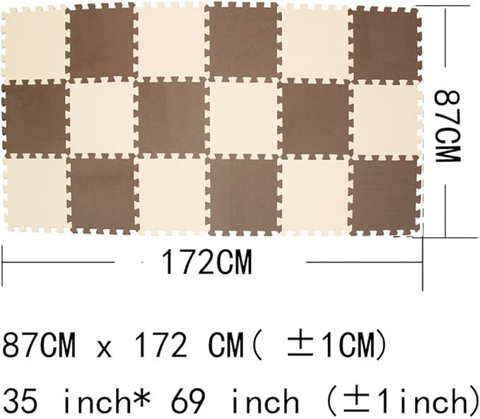 - ☺ Play Mat Size: the size of one piece:30 x 30 x 1CM (11.8 x 11.8 x 0.4 inches); 18 pieces mats cover area: 172cm x 87cm (±1CM) / 69" x 35"(±1inch)