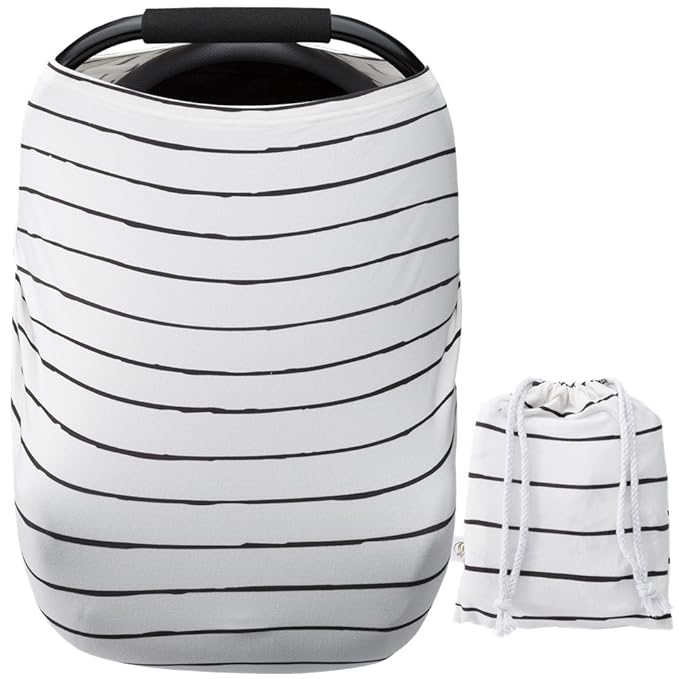 Car Seat Cover Baby – Multi-use Nursing Cover-Up for Breastfeeding, Carseat Canopy Cover, Stretchy Infant Stroller Covers for Boys and Girls (White with Black Stripes)