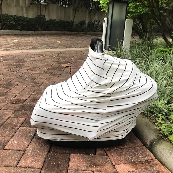 - Perfect for baby showers and gifts Looking for the ideal gift? Our multi-use car seat cover is an excellent choice for baby showers, birthdays, or just because. This versatile cover, with its neutral design of white with black stripes, is perfect for both boys and girls, making it a thoughtful and practical gift for new parents.