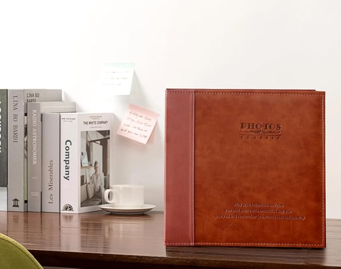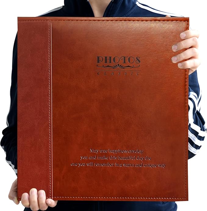 Magnetic Self-Stick Page Photo Album, Family Album, Leather Cover, Hand Made DIY Albums Holds 3x5, 4x6, 5x7, 6x8,8x10 Photos A52035 (Red Brown, Large)