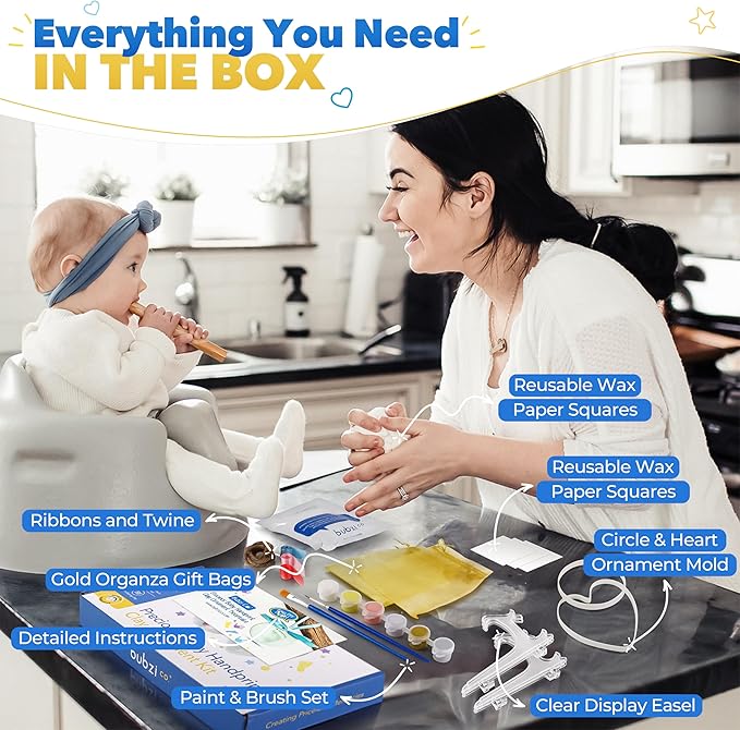 - BY PARENTS, FOR PARENTS Our babies are our whole world, and we know yours are too! We hope you never miss a moment and make molded memories that last a lifetime with our BUBZI CO baby handprint and footprint ornament kit. We're so confident you'll love it, that we offer a 100% CUSTOMER SATISFACTION GUARANTEE!