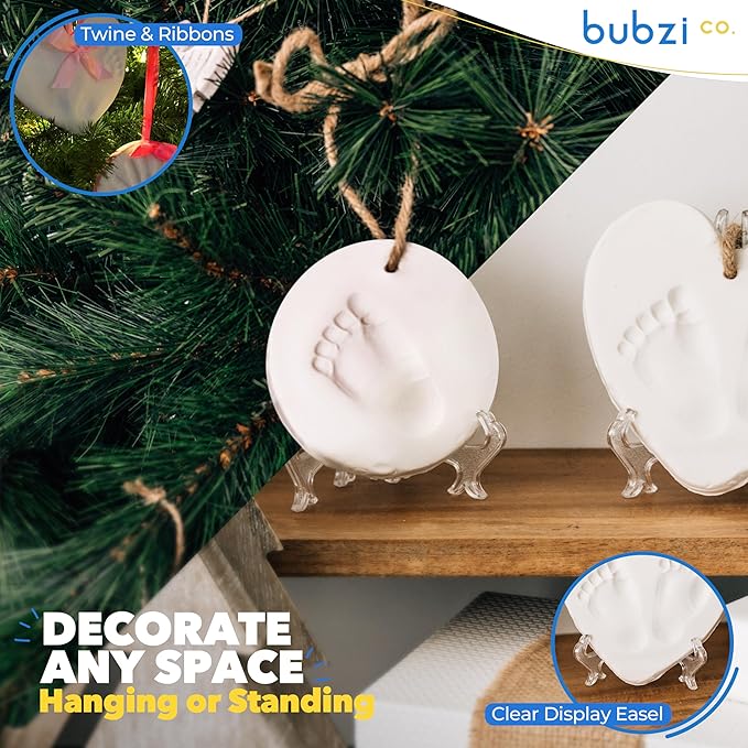 - LASTS A LIFETIME The Bubzi Co baby handprint and footprint keepsake ornament kit is crafted with care using durable clay that captures your little ones prints perfectly with a smooth, lasting finish you can look back on each time you decorate the tree!