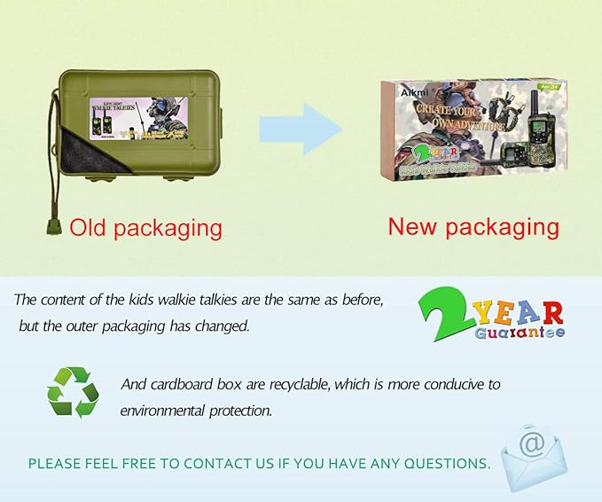 - ENHANCE FAMILY AFFECTION Aikmi walkie talkies for kids can help parents to find an interesting and inspiring way to accompany kids and listen to the inner voices of their kids, bringing the family closer. Let go of technology and be close to nature. Popular boys toys ages 4-12, especially suitable for 5, 6, 7, 8-year-old boys
