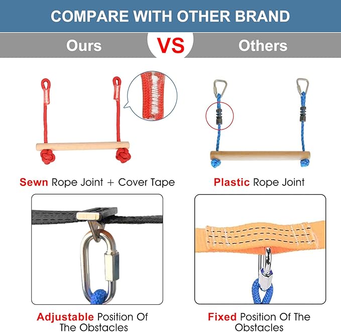 - Physical Fitness and Fun Trainning: The ninja slackline is a great exercise to complement your kids climbing. With our ninja warrior obstacle course with kids, your children can be well trained like balance, control and maneuvering. If you want to have fun with your kids, you can use our slackline kit for them to create their own gym no matter home or outdoor. The possibilities are endless