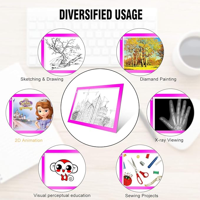 - USB POWERED -- The light pad comes with 1pc USB power cable, you can easily connect to any computer, power bank or USB adaptor.