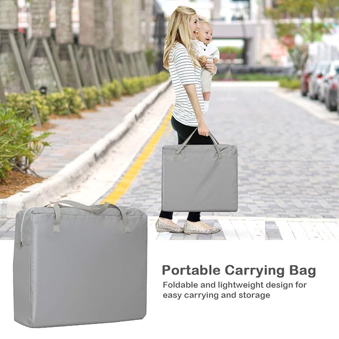 - 【Multifunctional Lightweight Playpen】Our foldable travel crib playpen is spacious enough for babies from 0 to 3 years old. It can not only be a place for babies to sleep, but also a place for mothers and babies to play games together. And the mattress has a soft and thick sponge that makes your baby sleep more comfortable and is the best gift for your baby.