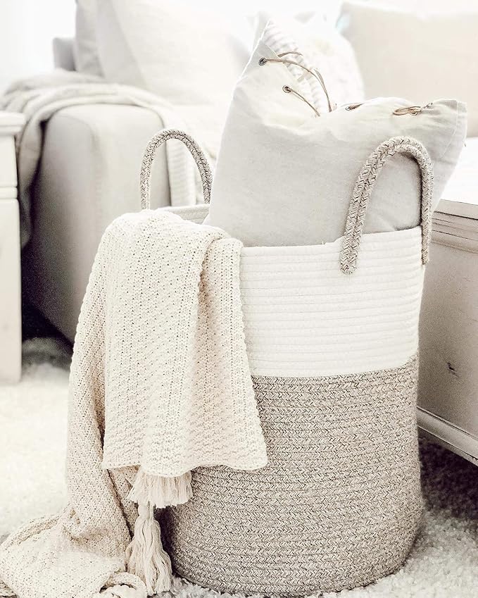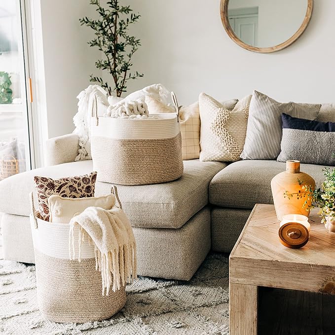 - Beautiful Addition to Your Boho Decor: Elevate your living room decor with this handwoven blanket basket. Neutral tones and minimalist design create a cozy, stylish vibe, perfect for farmhouse, Scandinavian, or boho decor aesthetics.