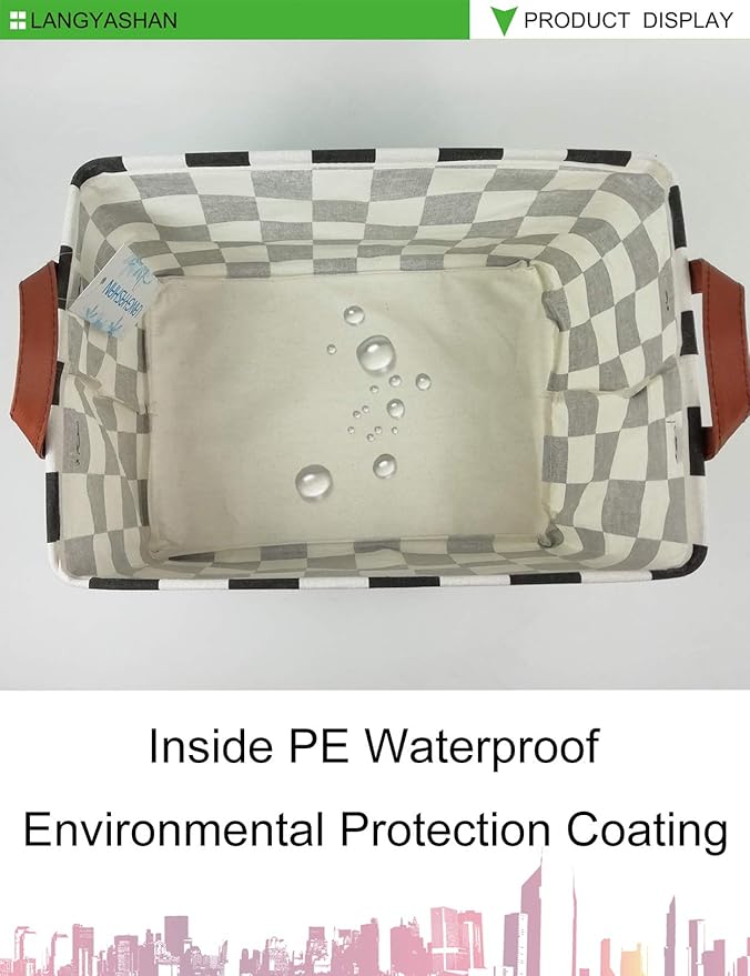 - Material: Polyester canvas linen and PE environmental protection waterproof coating. This storage basket easy to stand and foldable, Waterproof PE coating inner, which to achieve the effect of moisture resistant.