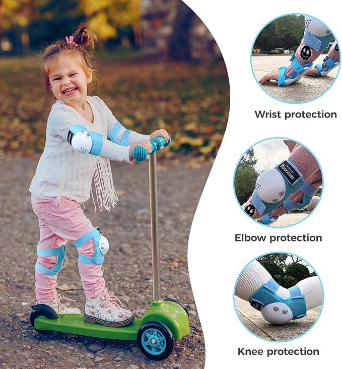 - Ventilated Fabrics - BOSONER kids knee pads and elbow pads set are made of high grade durable fabrics, with EVA foam padding and polycarbonate full-coverage caps, which has good shock absorption and cushioning effect to reduce the damage caused by sports fall