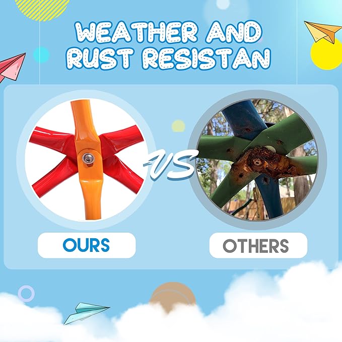- Portable & Space-Saving Design: Moveable Marvel! This outdoor climbing dome effortlessly transitions between backyard and indoor play in minutes. Designed as perfect small backyard play equipment, it protects your lawn while delivering adventure-packed kids' outdoor climbing toys. The lightweight geodesic dome structure (7ft diameter) fits snugly in tight spaces, offering a smarter alternative to bulky jungle gyms for kids.
