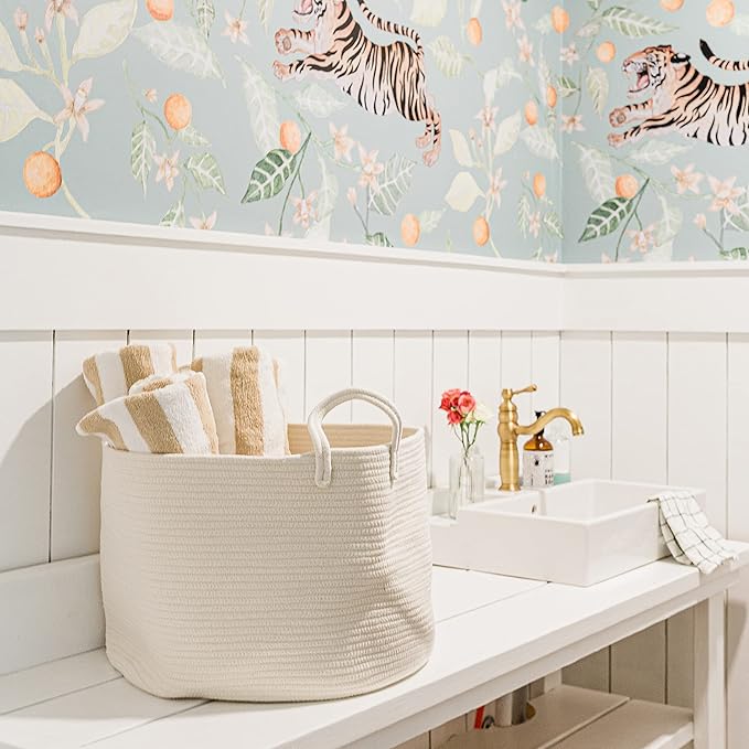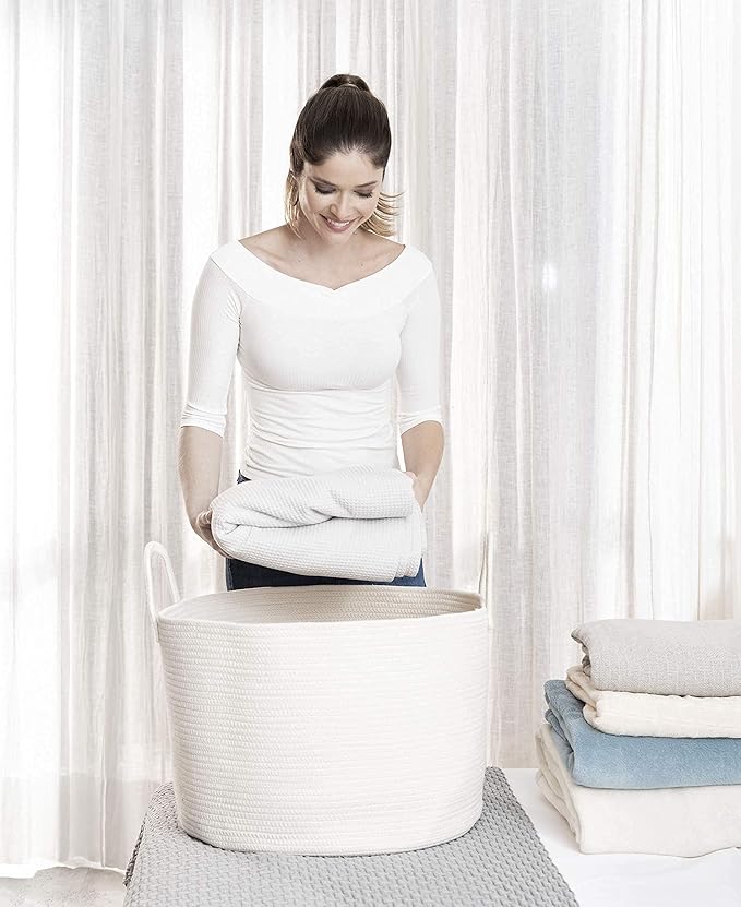- Soft Yet Durable Cotton Rope: This premium woven laundry basket is crafted from cotton, no chemicals, no plastics. Safe for children and pets, with a soft texture that won’t scratch floors or hands.