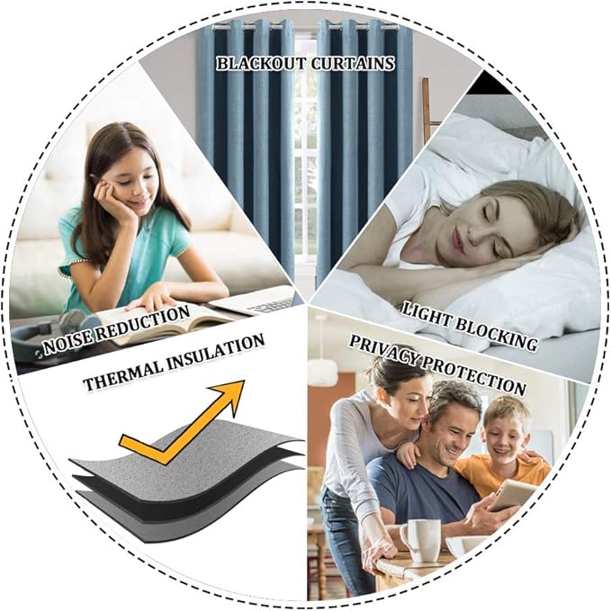 - TRIPE WEAVE TECHNOLOGY:We adopt tripe weave technology to make material. With the help of this technology, curtains could insulate the room from the heat and cold all the year, so that it will save energy. Also,curtains could reduce the noise to keep your room quiet. Blackout curtains could provide you a comfortable environment with privacy.
