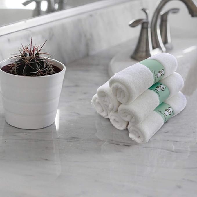 HIPHOP PANDA Baby Washcloths, Rayon Made from Bamboo - 2 Layer Ultra Soft Absorbent Newborn Bath Face Towel - Reusable Baby Wipes for Delicate Skin - White, 6 Pack