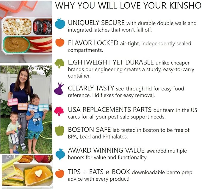 - Note that seal is TIGHT, young children may need assistance. WHAT YOU GET: *Two pack of authentic Kinsho bentos. *Sporks. *Kinsho Tips + Eats eBook (download) with 60+ Bento tips + recipes from Kinshoโs founder (a mom & award-winning mindful cooking author). *Industry leading 1 year guarantee. *Customer support from our Boston-based team.