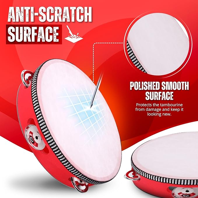 - Elevate your Music: Our tambourines for adults and kids have 8 pairs of single-row metal jingles that produce a crisp, clear sound; the tambourine is one of the musical instruments that adds depth and complexity to your music