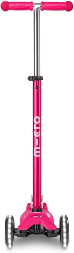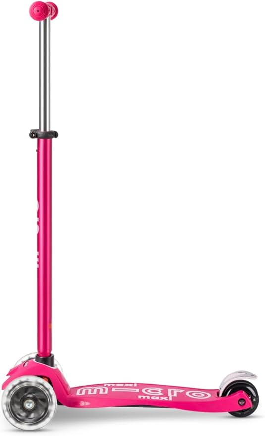 - Micro's 3-wheeled Maxi Deluxe LED scooter, with a lean-to-steer design, offers a stable ride that supports children as they curve and carve the sidewalk.. Features two front LED motion-activated light-up wheels. (No batteries required!)