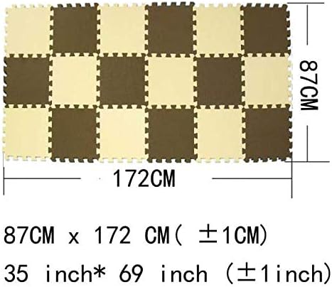 - Cover area: 86CM x 170CM( ±1CM) / approx. 1.46 SQ. M,one sets 18pcs,(300mm x 300mm x 10mm). Package includes 6 WHITE,6BEIGE and 6BROWN interlocking foam tiles, making it a perfect workout and training accessory.