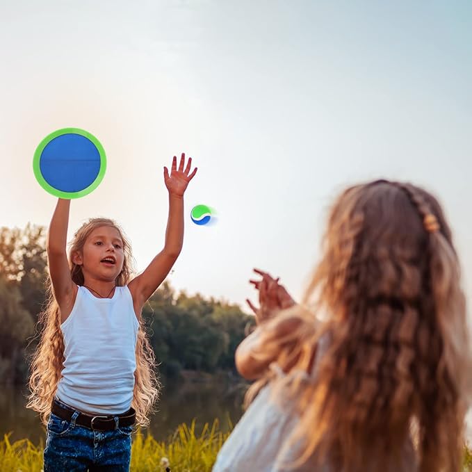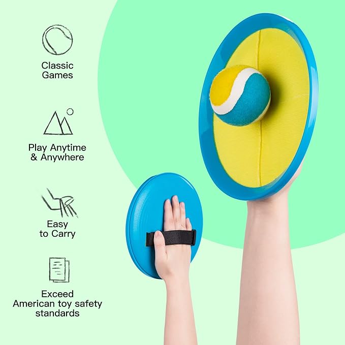 - 【Softer and High-quality Ball Set】The old version's tennis balls were very hard and lacked elasticity, making them difficult for kids to catch. Our balls are much stronger and softer, yet still have great stickiness, so kids can easily catch them and enjoy a comfortable feel. Kids won't lose their fun because they can keep catching the ball. This ball game is always lots of fun for little ones, even at family reunions.