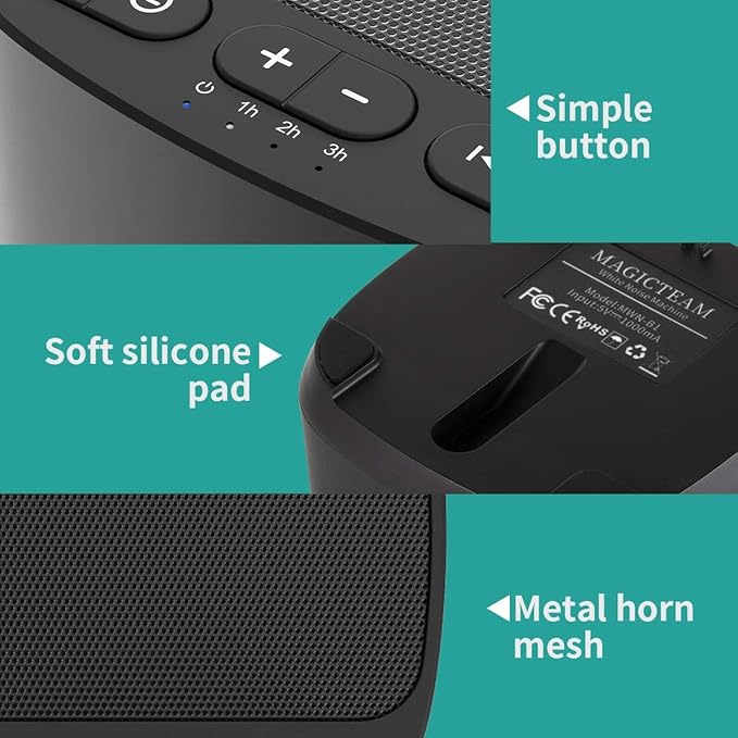- ❤Function & Safety:Memory function automatically restores your previous volume, sound and time,it is powered by AC or USB.The machine is approved by FCC, CE and RoHS,don't need to worry about accidents.