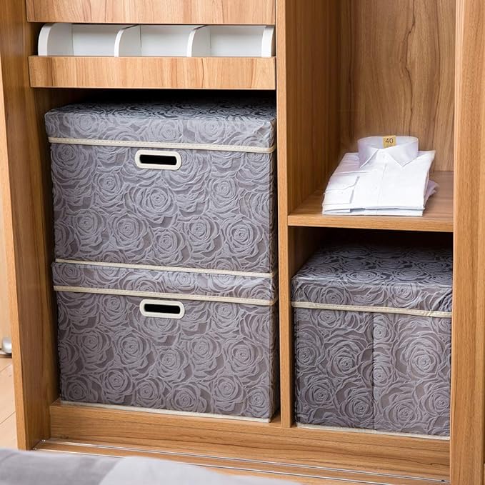 - 【Space Saving】Sturdy side design makes these bins collapsible which will take full advantage of your closet shelf, and also can be folded flat to save space when not in use.