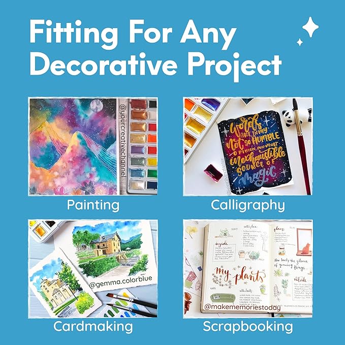 - Versatile & Safe: Our metallic watercolor paints are richly pigmented and lightfast. Ideal for crafts, calligraphy, and cardmaking, this metallic watercolor paint set is safe and ASTM compliant