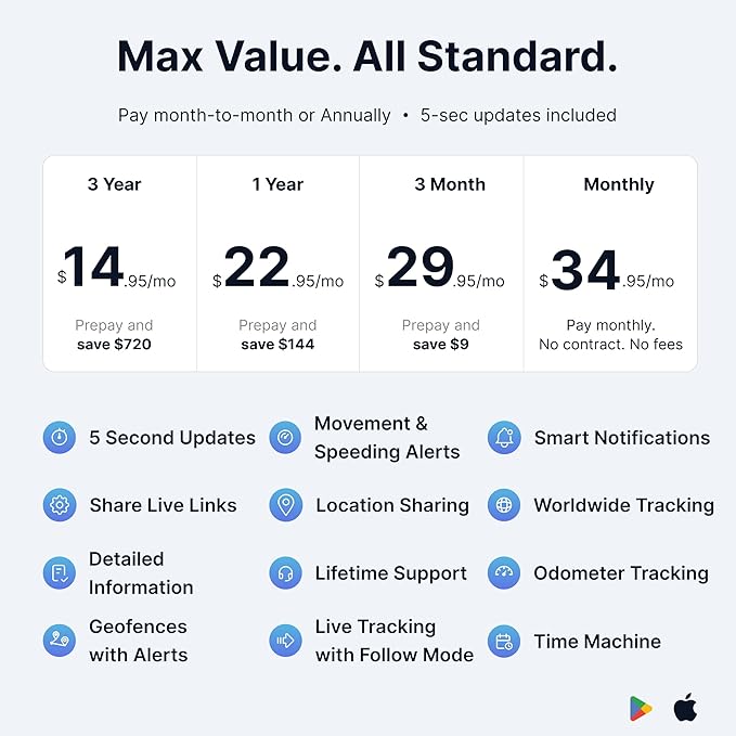 - LOW COST PLAN REQUIRED: Quickly download our easy-to-use app. Activate the device, choose your plan, and start tracking. Subscriptions as low as $14.95/mo. Get 24/7 support on GPS trackers with an active subscription. Worldwide coverage - update Network Mode in app before leaving the country.