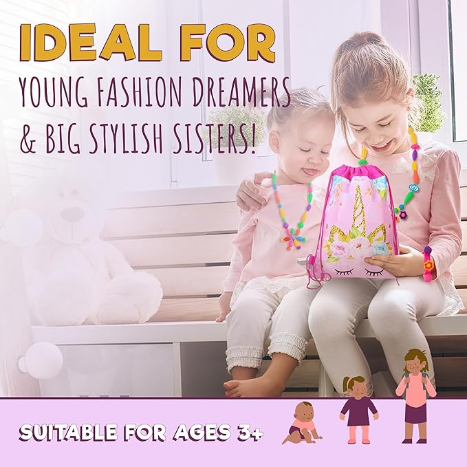 - [COMPLEMENTARY GIFT] – Every Pop Beads Jewelry Making Kit comes with a beautiful and stylish GIFT - A UNICORN DRAWSTRING BAG to carry the jewelry and any toys for girls. Little girls can create them at home or on the go with friends.