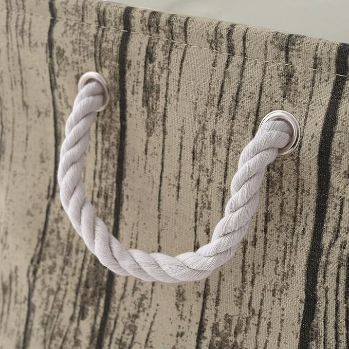 - 【Chic Design & Fashion Style】Rectangular shape with rounded corners and charming tree stump print, Creatively designed with rustic style, the storage baskets include side handles, and collapsible frame