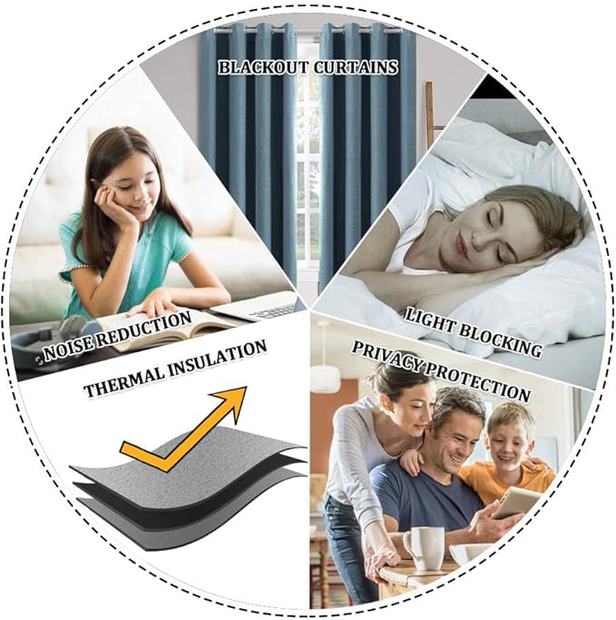 - TRIPE WEAVE TECHNOLOGY:We adopt tripe weave technology to make material. With the help of this technology, curtains could insulate the room from the heat and cold all the year, so that it will save energy. Also,curtains could reduce the noise to keep your room quiet. Blackout curtains could provide you a comfortable environment with privacy.