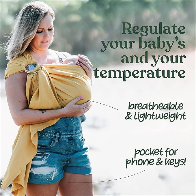 - ✔ REGULATES TEMPERATURE BETTER THAN A WRAP: Not all young babies can control their temperature well & can easily overheat in a wrap. Our ring sling baby carrier will keep you & your precious baby comfortable yet cool & won’t wrinkle your clothes as much either! The tail fabric can double as a nursing cover, so you can breastfeed your baby privately while on the go.