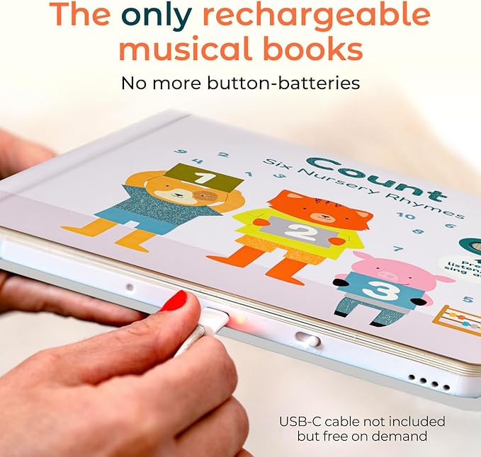 - Educational and fun: This book is one of the best interactive books for 1+ year old. It combines counting songs and number songs into a musical rhymes book, making learning numbers fun and engaging for toddlers. Songs included One, Two, Buckle My Shoe, Five Little Birds, This Little Piggy, Five Little Monkeys, Ten Green Bottles, and One, Two, Three, Four, Five.