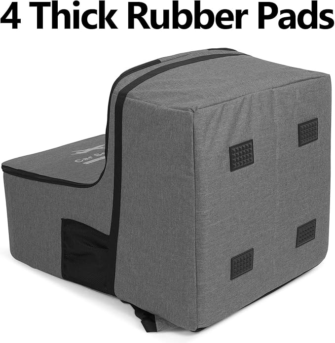 - Keep Car Seat Secure: Thick padding sandwiched between layers of sturdy material, which keeps car seat in good condition. An adjustable strap with buckle in this car seat bag help reduce the risk of bumping and damping. 4 thick rubber pads on the bottom to prevent scraping.