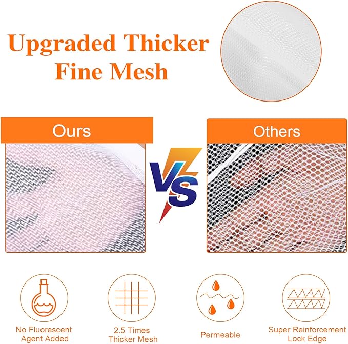 - [Wide Mesh] - With wider fine mesh holes, soap and water flow easily through the mesh for optimal cleaning, your clothes can be washed very clean and dry quickly. Protect your delicates from tangling, snagging, or pulling in washer or dryer.